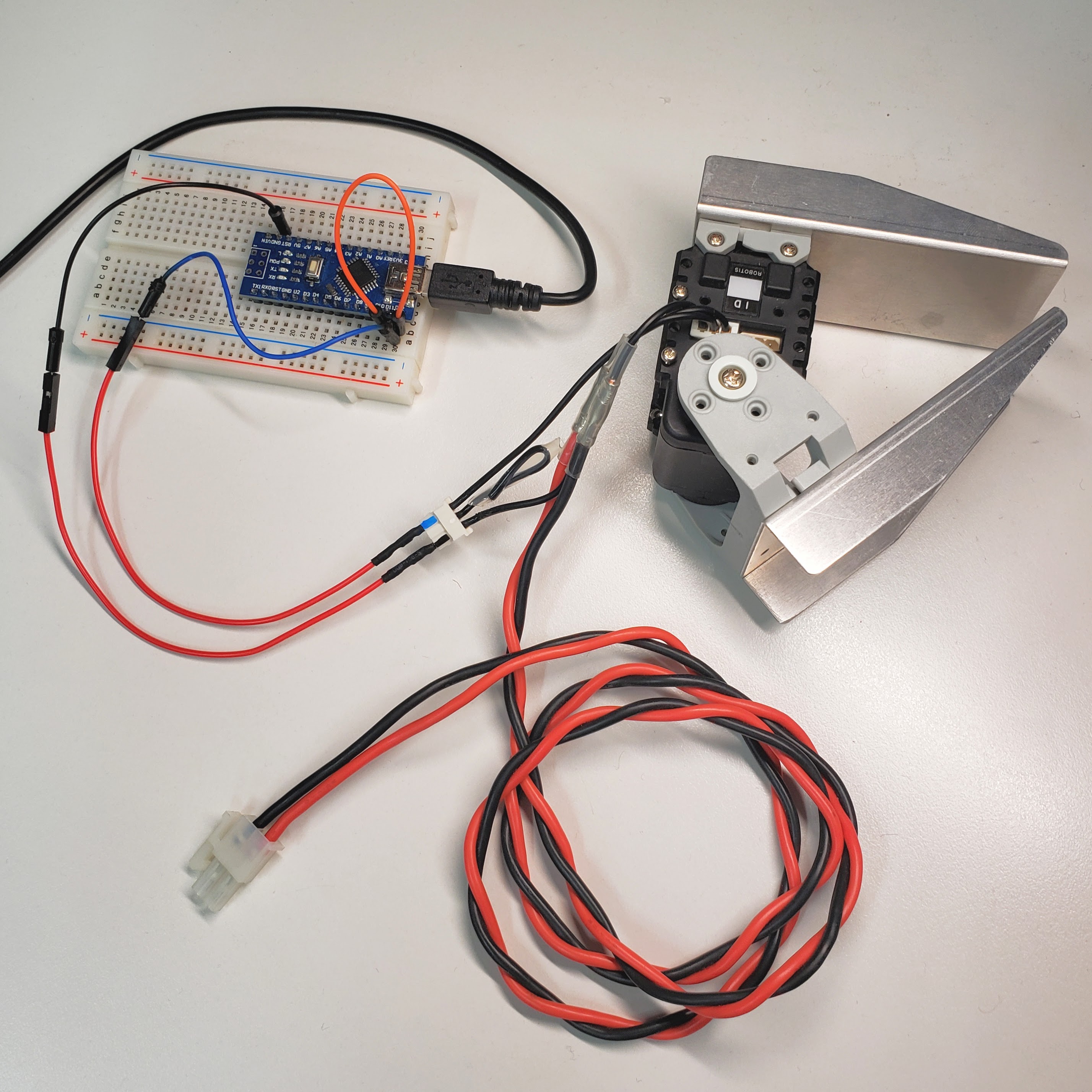 ロボット制御とシミュレーションの演習で説明した通り本演習ではアームロボットの制御基板(DXHUB)を介してPCからDynamixelサーボモータに指令を送っているが, Dynamixelモータは非同期式シリアル通信の一種であるUART(半二重式)で制御されている [17]ため, 以下のようにDXHUBの代わりにArduino基板から制御指令を送ることもできる.