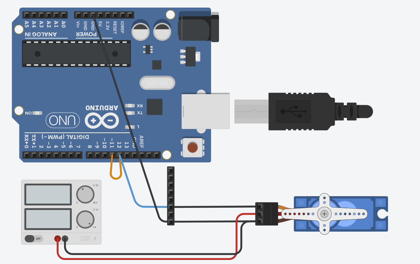 に示すようにArduinoとDynamixelサーボモータを接続する. 回路図はに示すようになっている. に示すようなケーブルを申し出て支給してもらう. 支給ケーブルとArduinoは以下のように接続する.